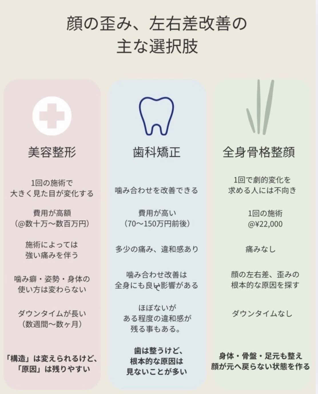 なので私は、「全身骨格から整えていく戻らない施術」を選択肢の一つとして用意しています😊